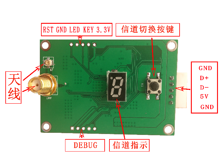 工作频率 | 2405MHz~2480MHz(16个信道,每一信道65535个PADID) |
